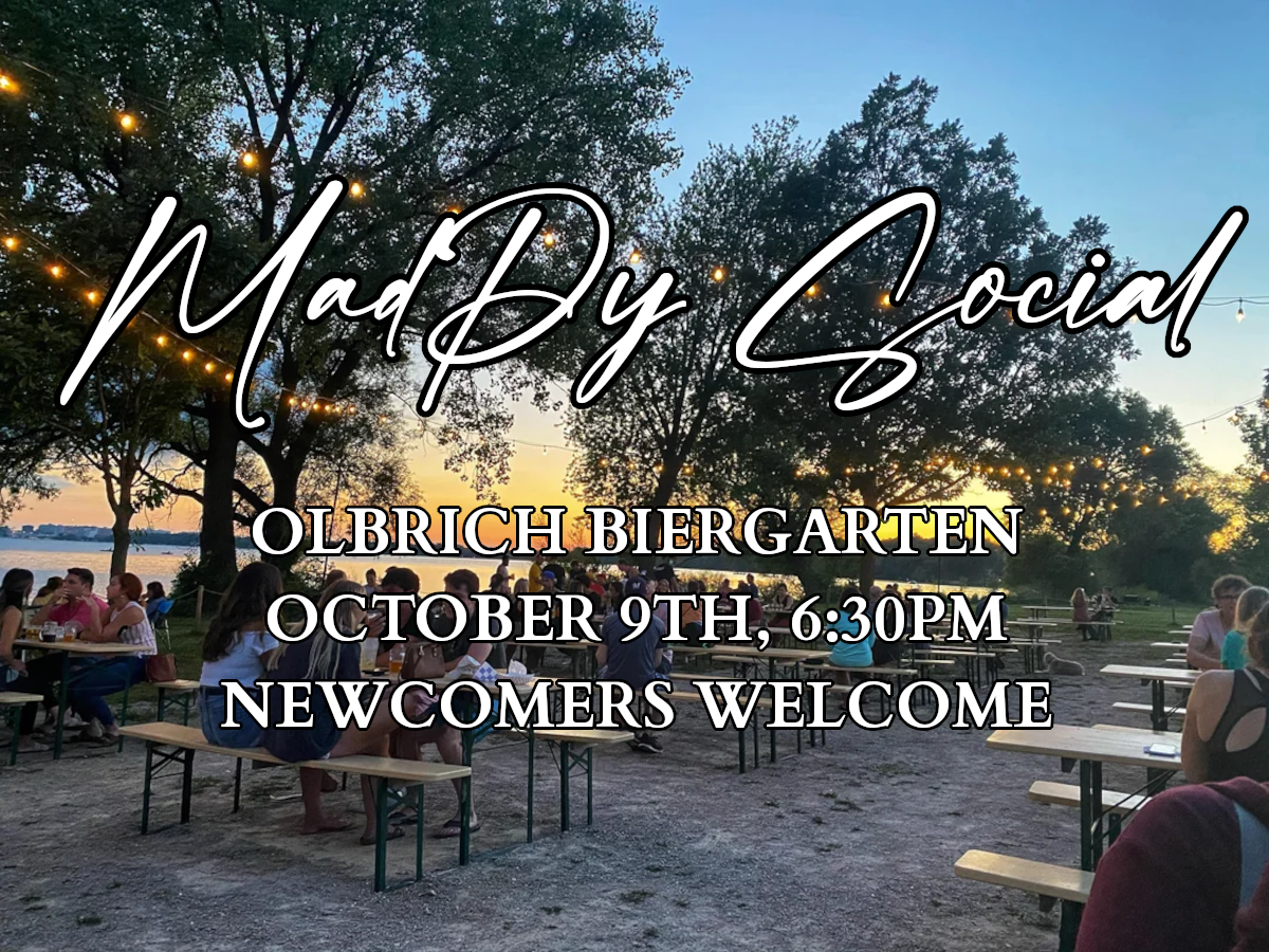Olbrich Biergarten has beverages (both with & without alcohol), bar snacks, and a beautiful view of the lake. To find us, look for Ed at one of the picnic tables. In case the Biergarten is closed (eg., for rain), we'll relocate to the Muskellounge — 4102 Monona Dr.